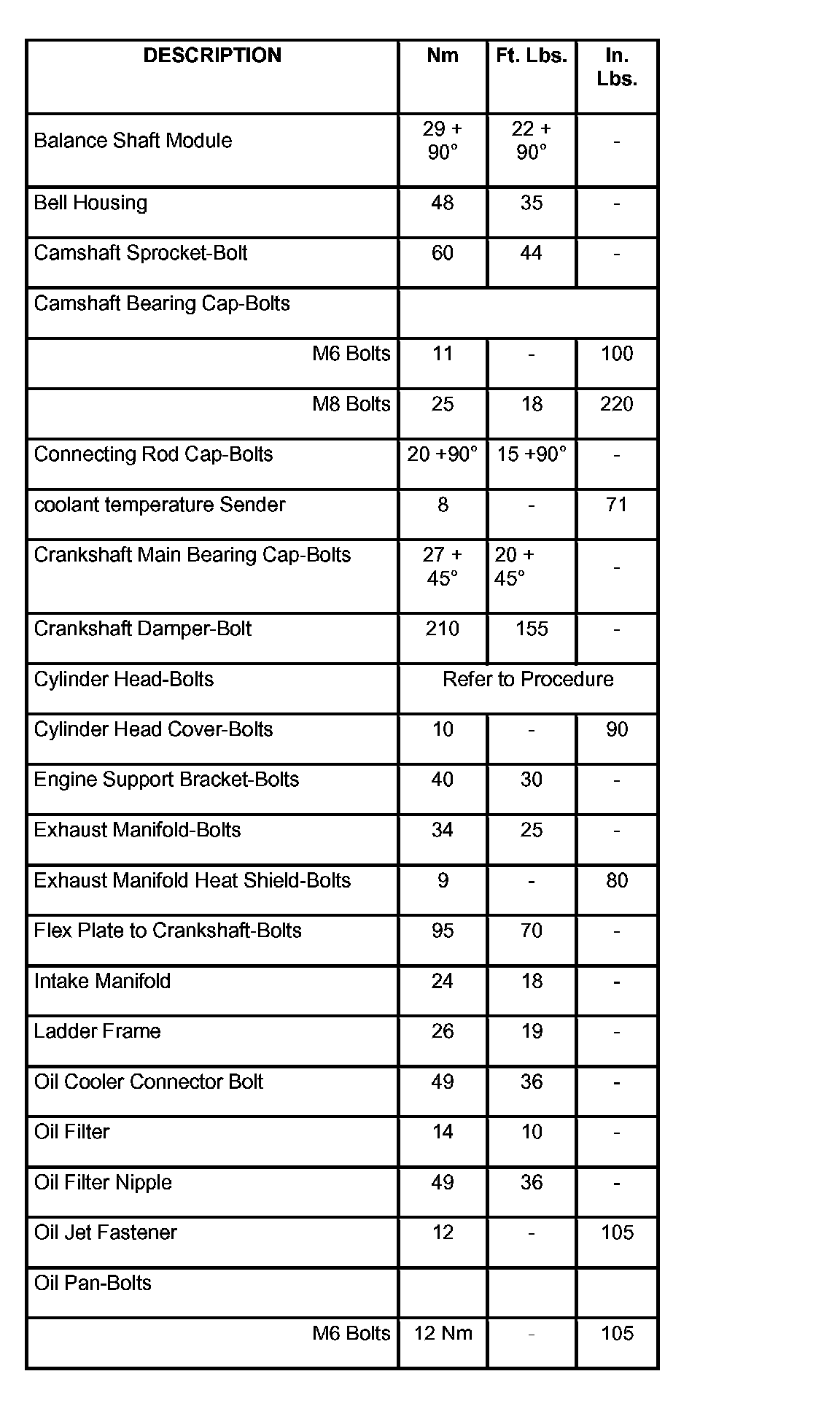 Engine Torque Specifications