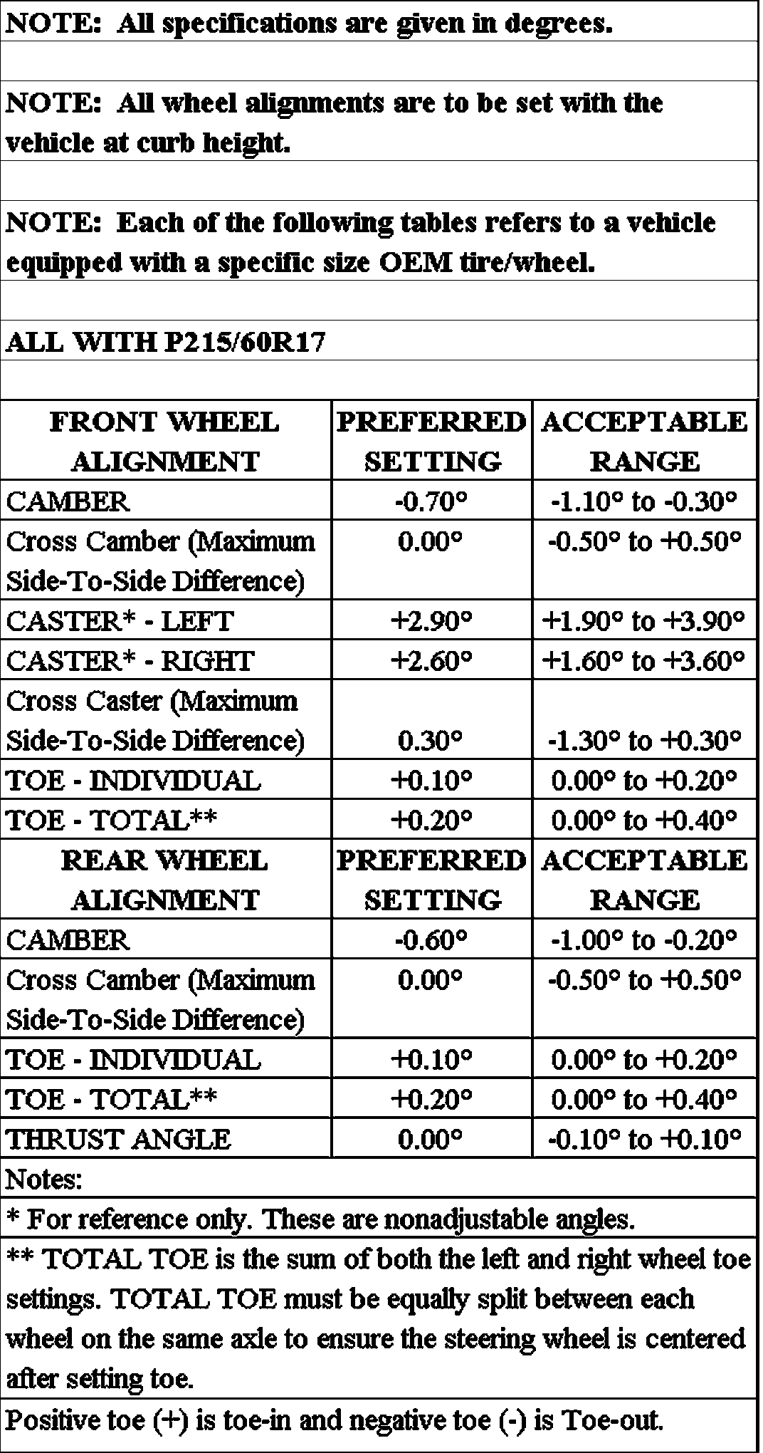 Wheel Alignment Specifications