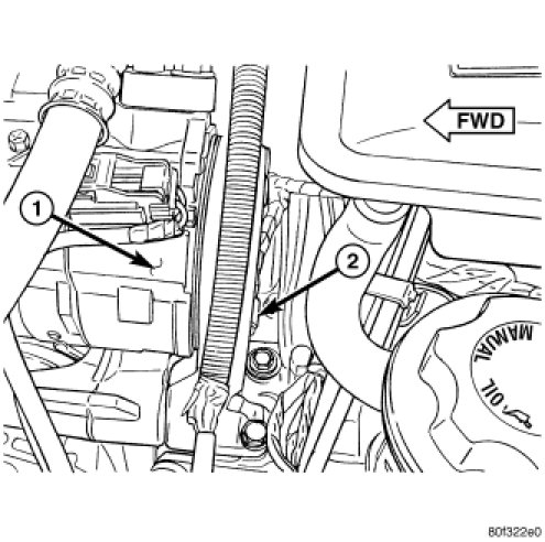 3. Carefully unbolt air conditioning compressor from front of engine. Do not disconnect any A/C hoses from compressor. Temporarily support compressor to gain access to ECT sensor.