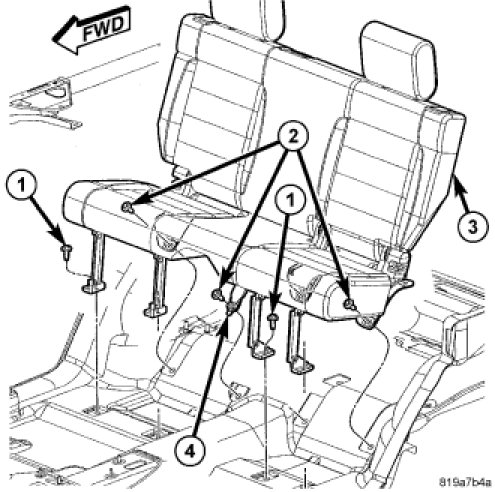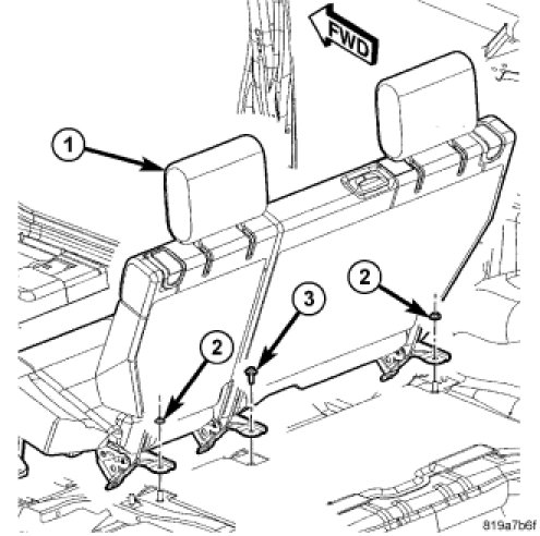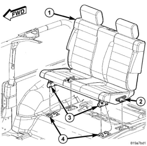1. Position the seat assembly into the vehicle and over the rear studs.