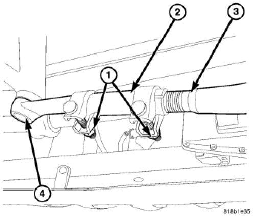 4. Adjust the drag link adjuster sleeve so that the left and right toe values are equal. Verify the steering wheel is still straight. Position the clamps as shown and tighten to 35 Nm (26 ft. lbs.).