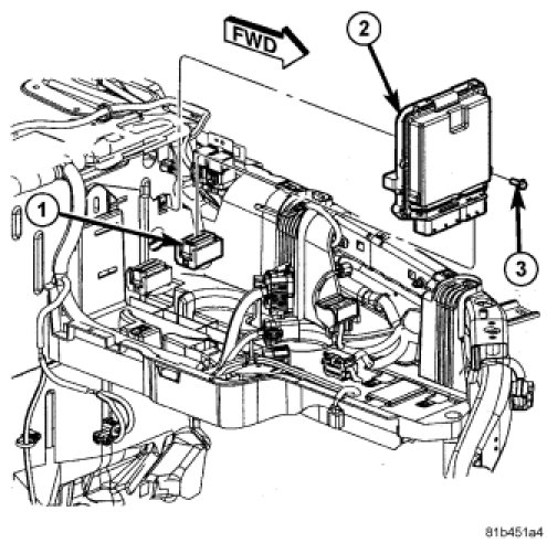 4. Remove ECM mounting bolts (3) and remove ECM (2) from vehicle.