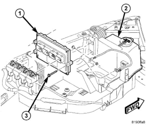 1. Install PCM (1) and three mounting screws (3) to vehicle.