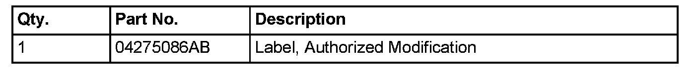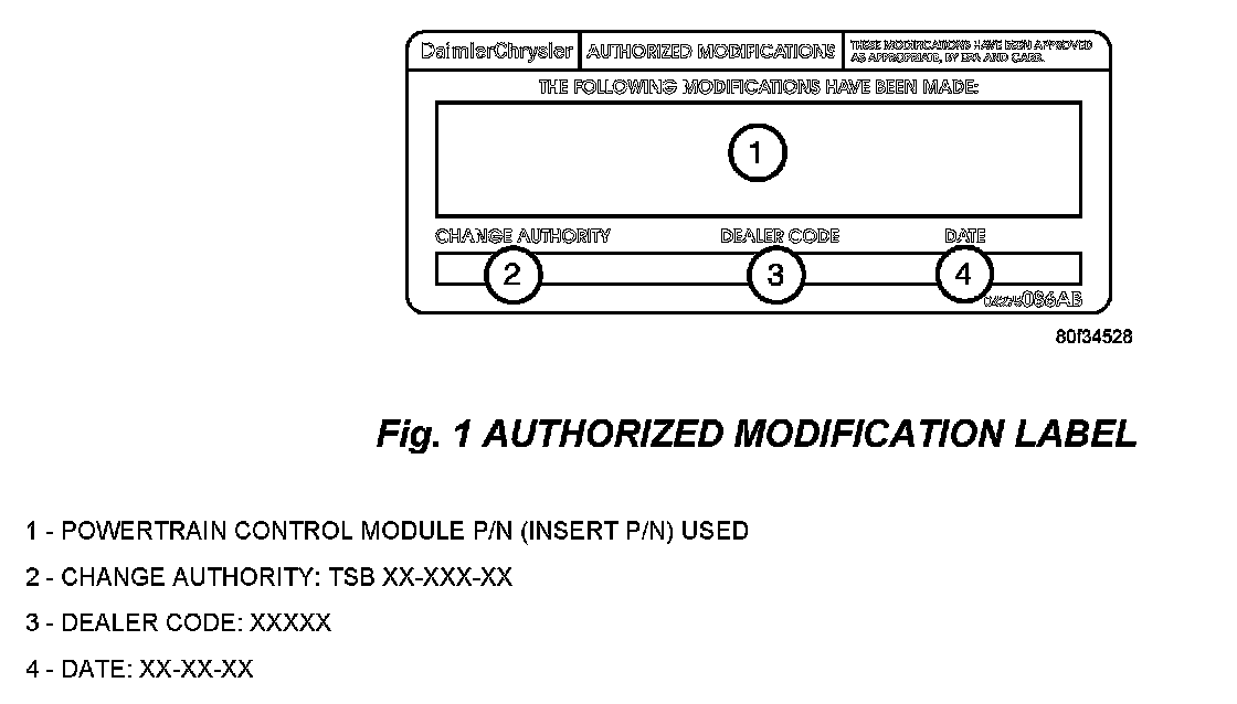 3. Type the necessary information on the "Authorized Modification Label" p/n 04275086AB and attach near the VECI label (Fig 1).