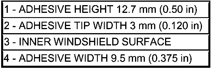 1. Apply bead of adhesive (1) with a triangular nozzle directly to the windshield seal starting at bottom in center of windshield.