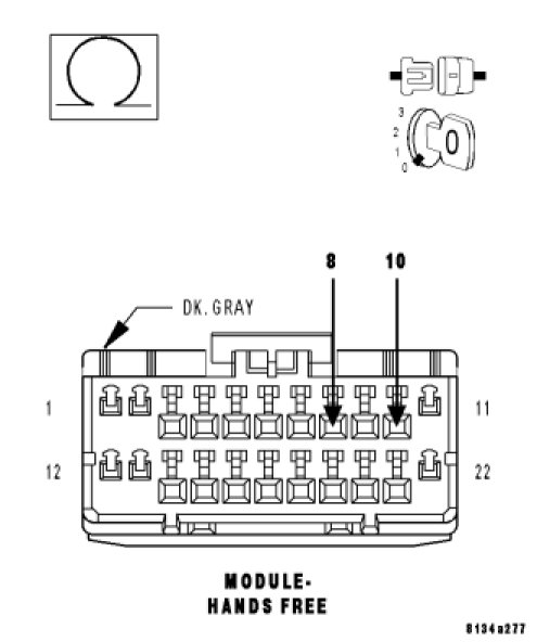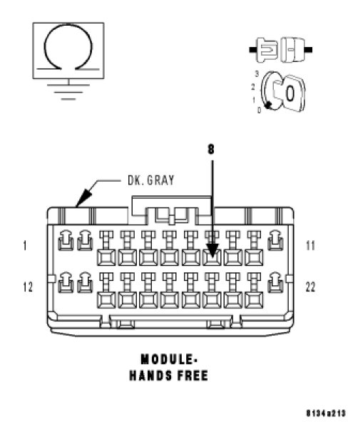 - Inspect the wiring and connectors for damage or shorted circuits. If ok, replace and program the Hands Free Module.