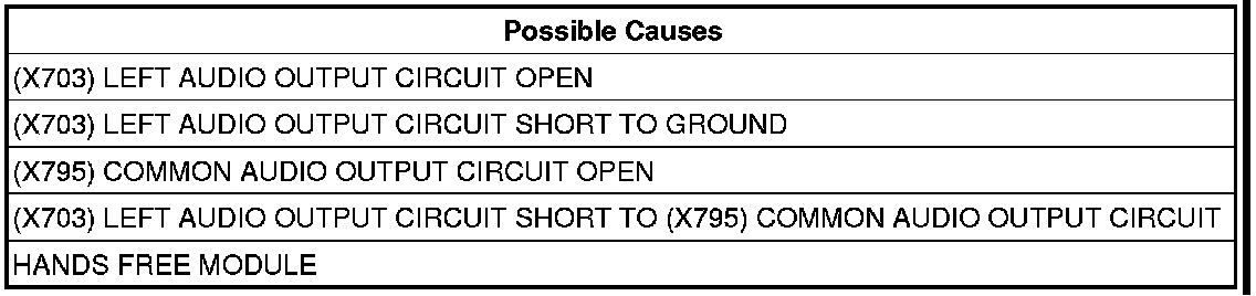 The Hands Free Module detects low voltage on the (X703) Left Audio Output circuit.