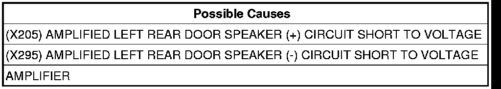 - Repair the (X205) Amplified Left Rear Door Speaker (+) circuit for a short to voltage.
