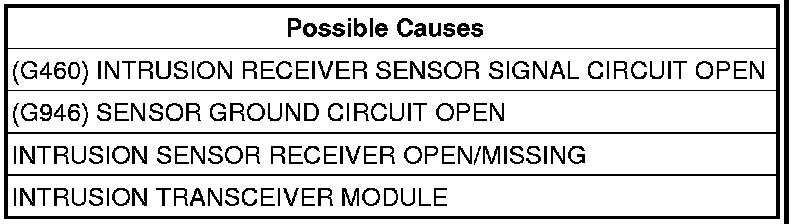 - Repair the (G460) Intrusion Receiver Sensor Signal circuit for an open.
