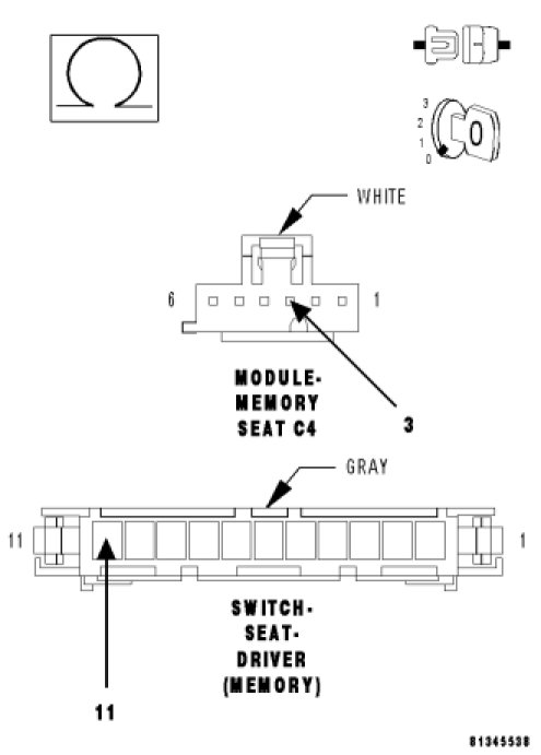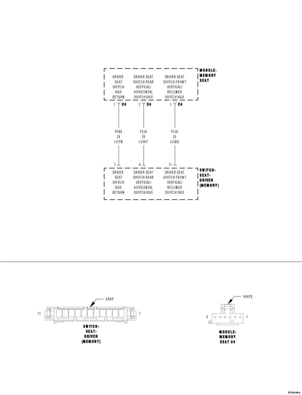 Measure the resistance between the (P239) Driver Seat Rear Vertical/Horizontal Switch MUX circuit and the (P599) Driver Seat Switch MUX Return circuit in the C4 connector.