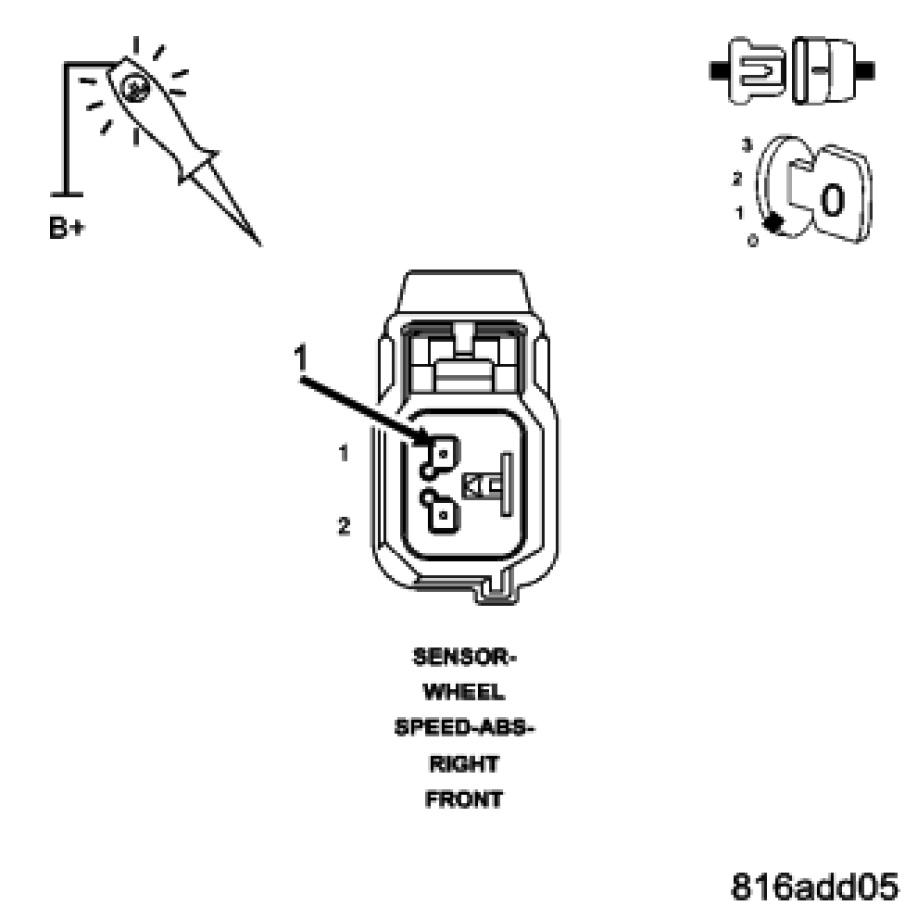 Using a 12-volt test light connected to 12-volts, probe the (B7) Right Front WSS Supply circuit.