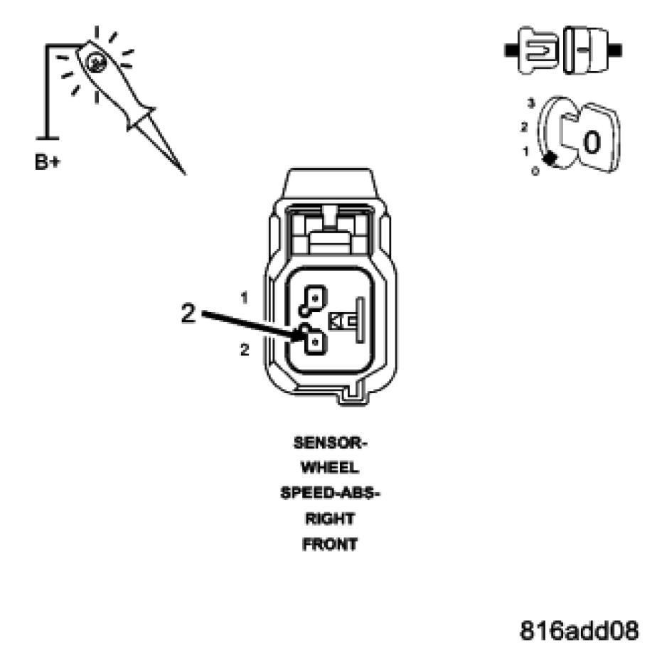 Using a 12-volt test light connected to 12-volts, probe the (B6) Right Front WSS Signal circuit.