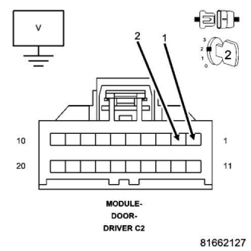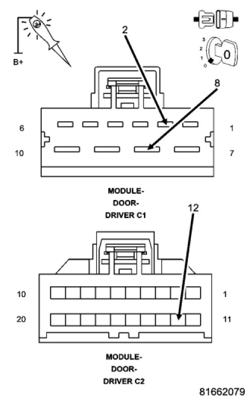 Disconnect the Driver Door Module C1 and C2 harness connectors.
