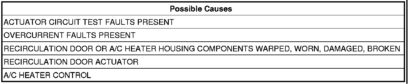 If the A/C Heater Control detects too many commutator pulses when calibrating the recirculation door.