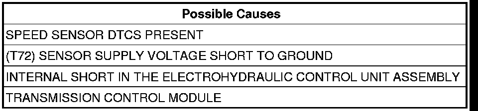 The Sensor Supply Voltage circuit supplies a 6-volt power supply to the two input speed sensors. The Sensor Supply Voltage circuit is constantly monitored for correct voltage between 4.8 to 7.2 volts. If the voltage does not stay within the 4.8 to 7.2 volt range, the appropriate DTC will set.