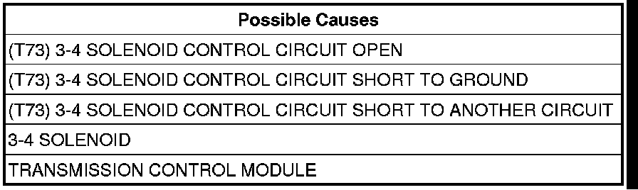 - Repair the (T73) 3-4 Solenoid Control circuit for a short to ground.