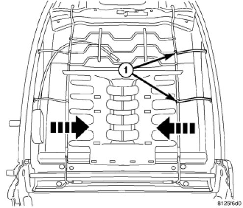 3. Release the lumbar mat side wires (1) by pulling out on the wire supports and then pulling them in.