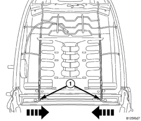 5. Pull the upper support wires (1) down and release the lumbar mat from the seat back frame.