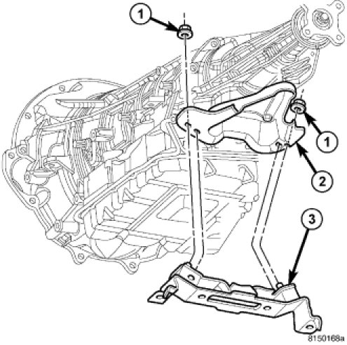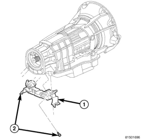 1. Install the transmission mount bracket (2), if removed.
