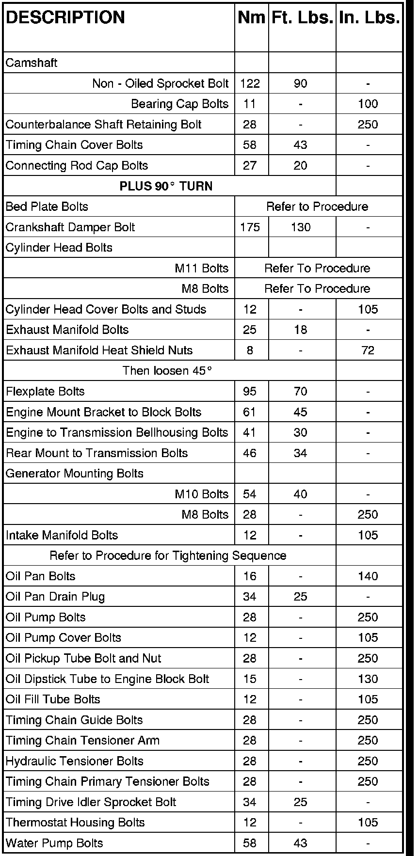 Engine Torque Specifications