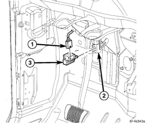 7. Release the brake pedal. Then pull the pedal lightly upward to its normal at-rest position. The pedal will set the plunger to the correct position as the pedal pushes the plunger into the switch housing. The switch plunger will make a light audible ratcheting noise as it self-adjusts.