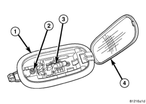 4. Swing the notched end of the lens downward far enough to access the bulb (3).
