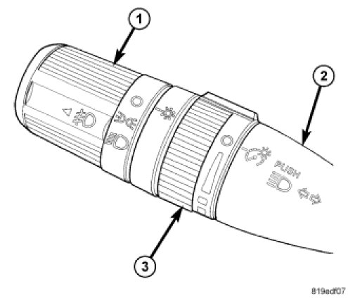 - Front Fog Lamps - For vehicles so equipped, the left multi-function switch control knob provides detent switching for the optional front fog lamps.