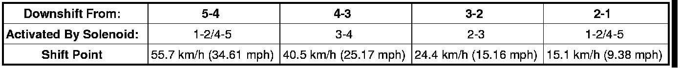 When the TCM detects that system voltage has dropped below 8.5 volts, it disables voltage-dependant diagnostics and places the transmission in the temporary Limp-In Mode. When the TCM senses that the voltage has risen above 9.0 volts, normal transmission operation is resumed.