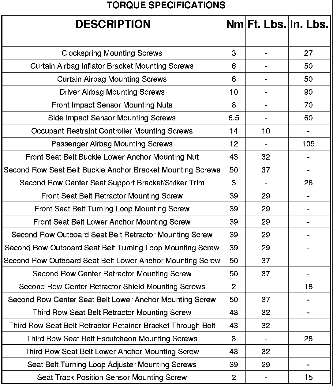 Restraints and Safety Systems: Specifications