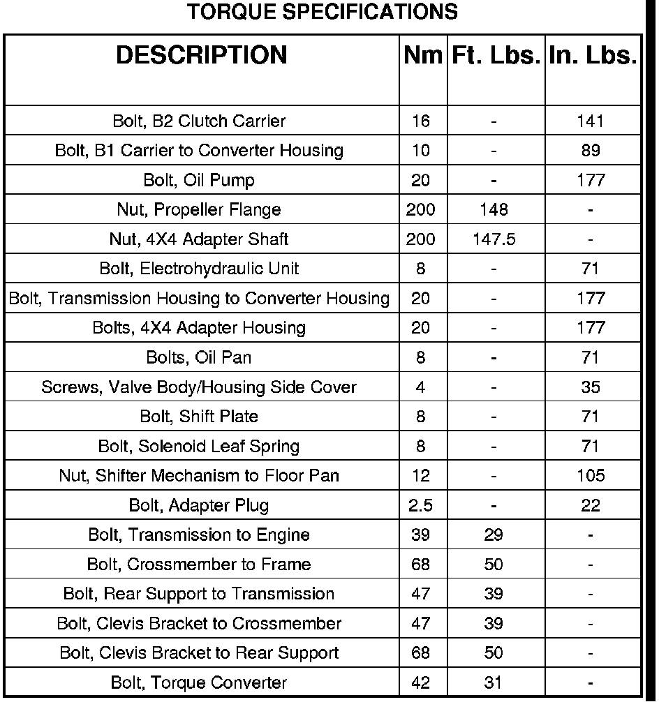 TORQUE SPECIFICATIONS