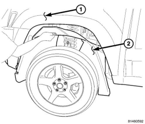 5. Install the inner fender well (2).