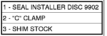 a. Position seal installer disc 9902 (1) between the "C" clamp (2) and the new transmission fill tube seal