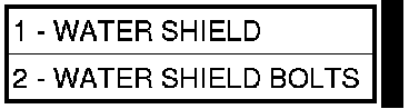 8. Tighten the water shield bolts to 12 Nm (9 ft.lbs).