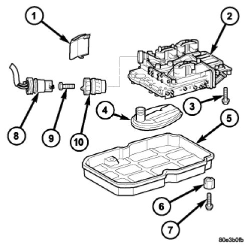 4. Loosen adapter plug bolt (9) and remove from the adapter plug (10) from the transmission housing.