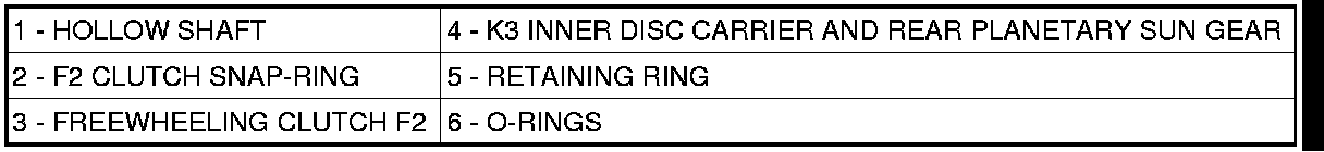 2. Remove rear sun gear (4) with the K3 internally toothed disk carrier and rear freewheeling clutch F2 (3).