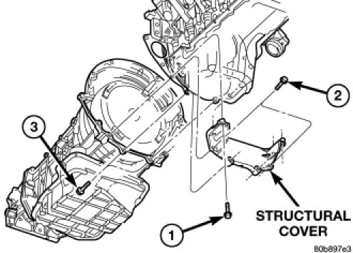 21. Install the engine to transmission structural cover. Structural Dust Cover - Installation