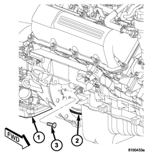 25. For gas engines, install all torque converter-to-driveplate bolts (3) by hand.