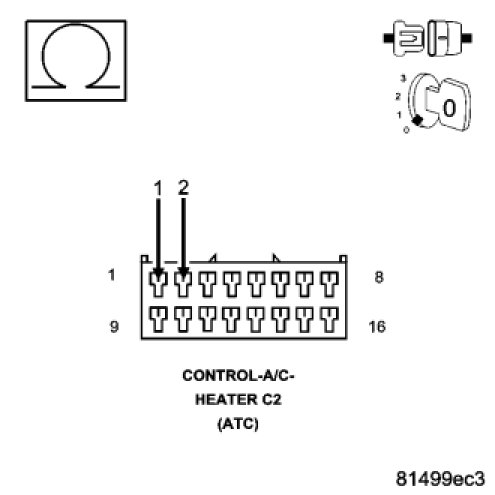 Disconnect the A/C Heater Control C2 harness connector.