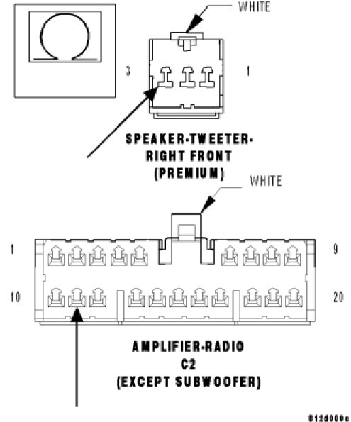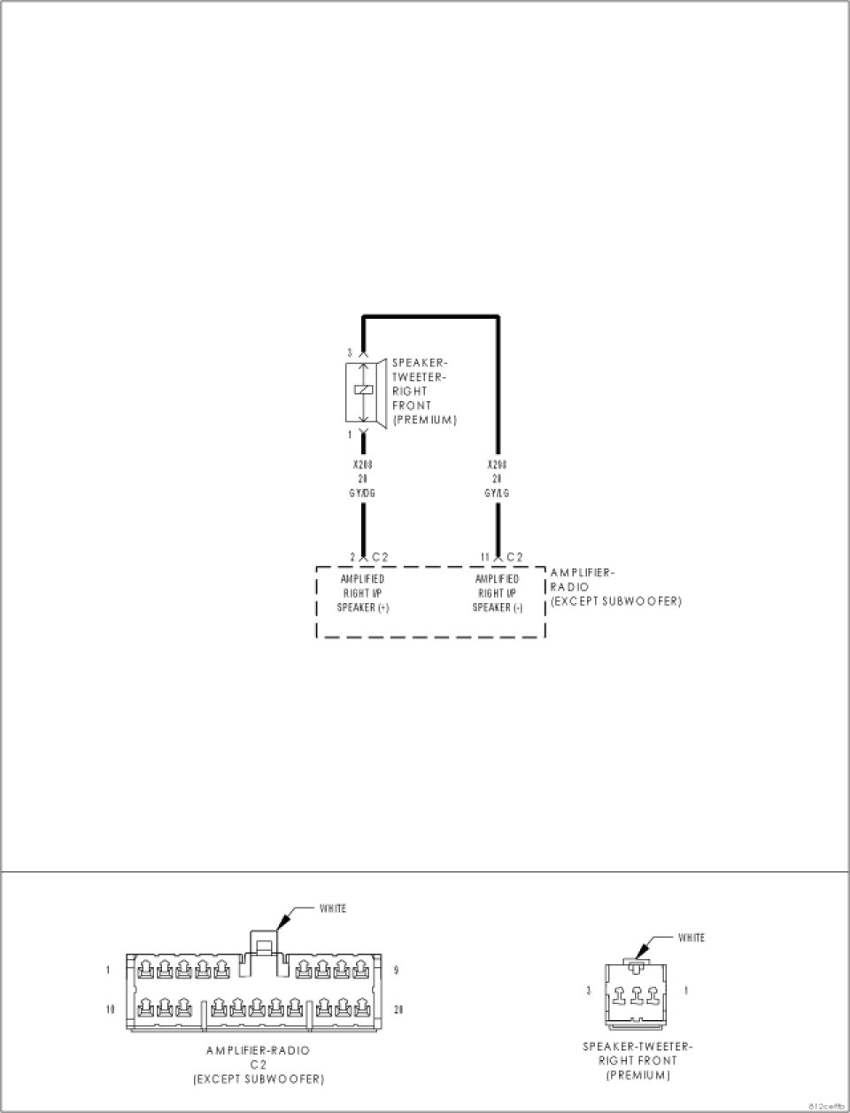 With a voltmeter set to read in A/C voltage, measure the voltage of the Amplified Right I/P Speaker circuits in the Amplified Right I/P Speaker harness connector.