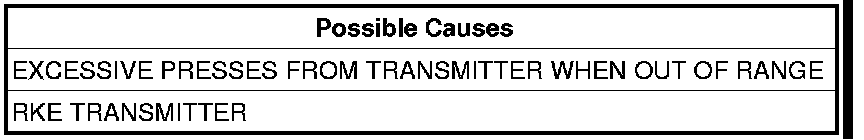 - The conditions that caused this code to set are not present at this time. Inform the owner of the most probable cause for this code to set and therefore cause the RKE system to be inoperative.