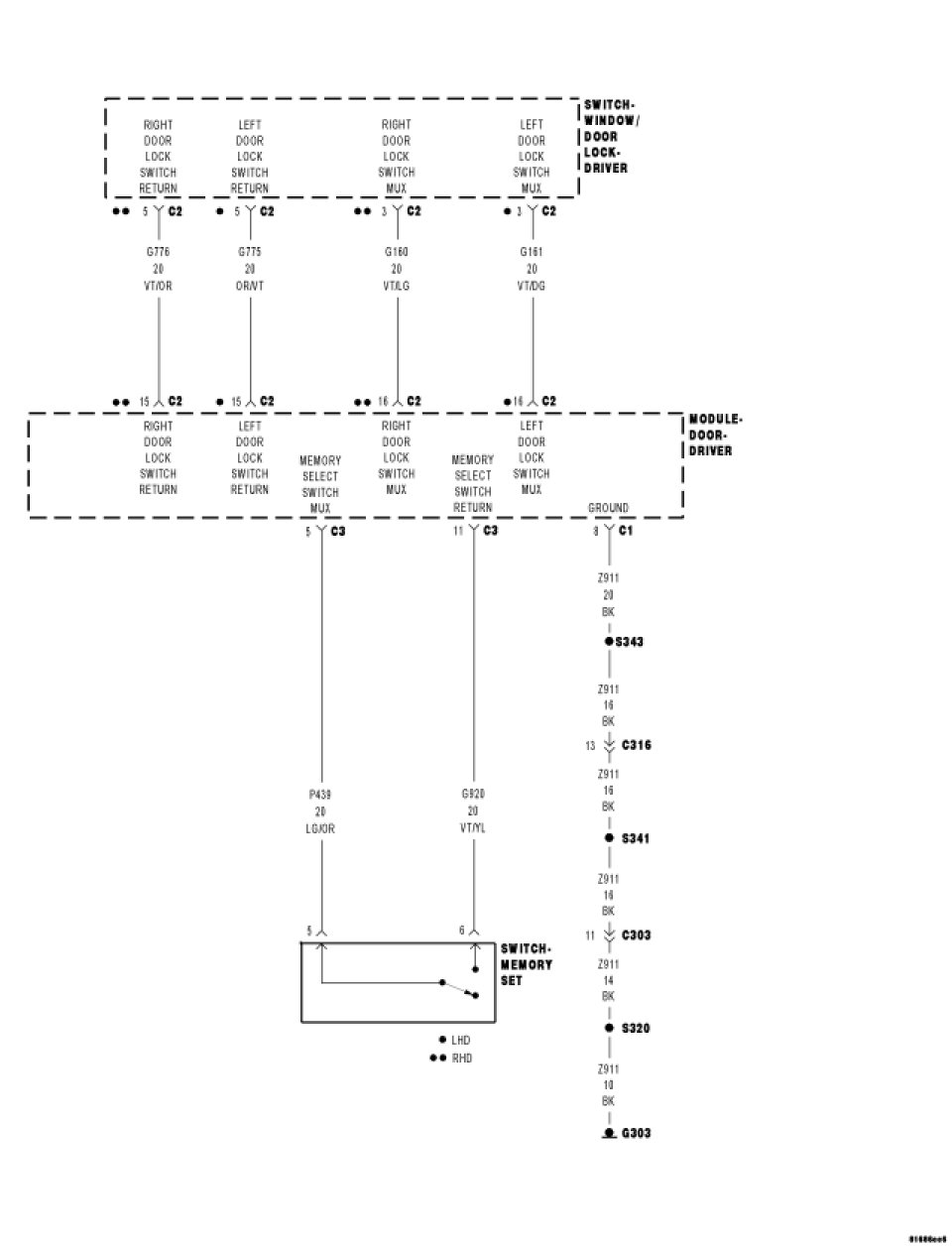 - Repair the (G160/G161) Right/Left Door Lock Switch Mux circuit for a short to the (Z911) Ground circuit.