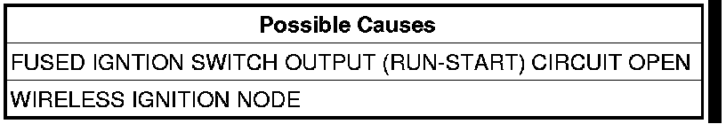 NOTE: Check the related fuses to the Fused Ignition Switch Output (Run-Start) circuit. If the fuse is found to be open, repair the circuit for a shorted condition.