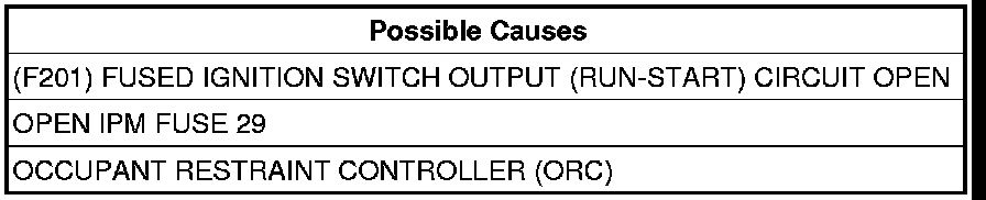 Remove the Airbag Run-Start Fuse 29 from the IPM and inspect the fuse.