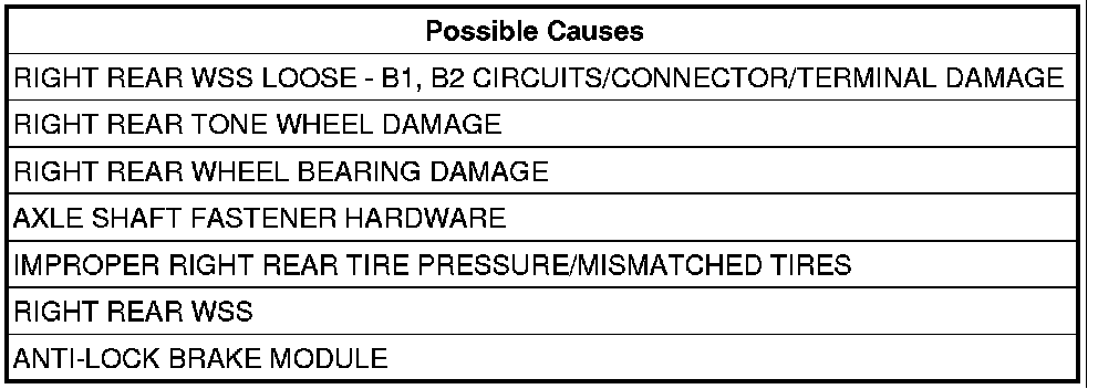When the Right Rear Wheel Speed Sensor (WSS) Signal is intermittently missing while vehicle speed is above 40 km/h (25 mph) or erratic wheel speed signal during acceleration or sensed wheel speed is different from other wheels.