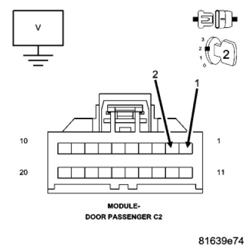 Disconnect the Passenger Door Module C1 and C2 harness connectors.