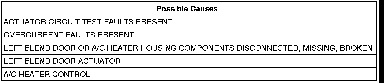 If the A/C Heater Control detects an excessive amount of commutator pulses when calibrating the left blend door.