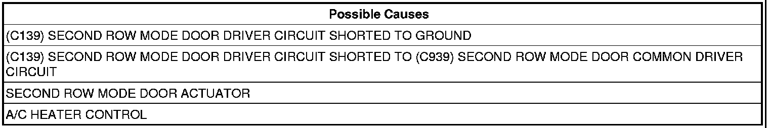 If the A/C Heater Control detects a short to ground on the (C139) Second Row Mode Door Driver circuit.