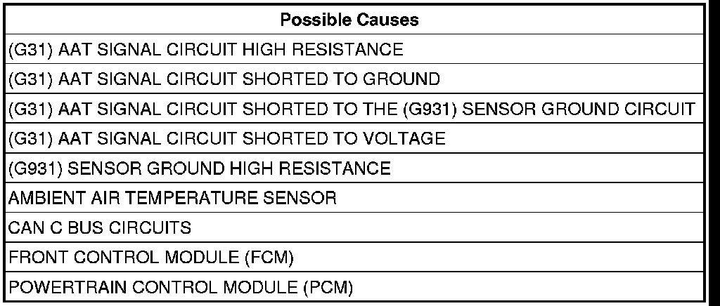 - Repair the short between the (G931) Sensor ground circuit and the (G31) AAT Signal circuit.