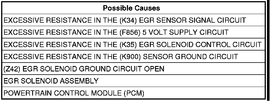- Repair the (K34) EGR Signal circuit for high resistance.