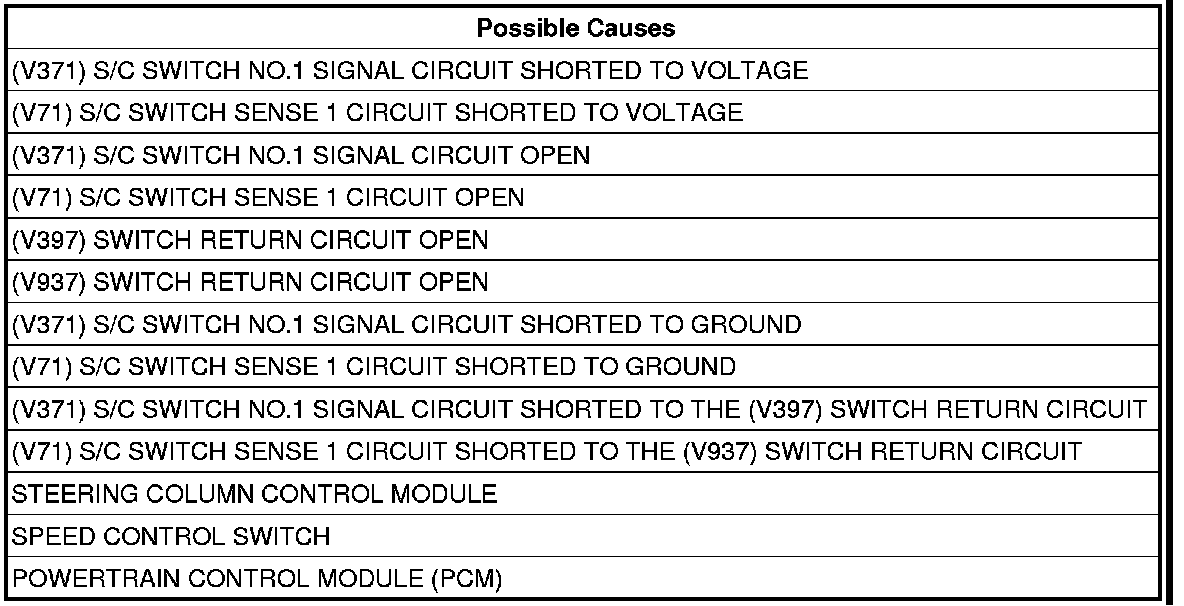 13. (V71) S/C SWITCH SENSE 1 CIRCUIT SHORTED TO THE (V937) S/C SWITCH RETURN CIRCUIT
